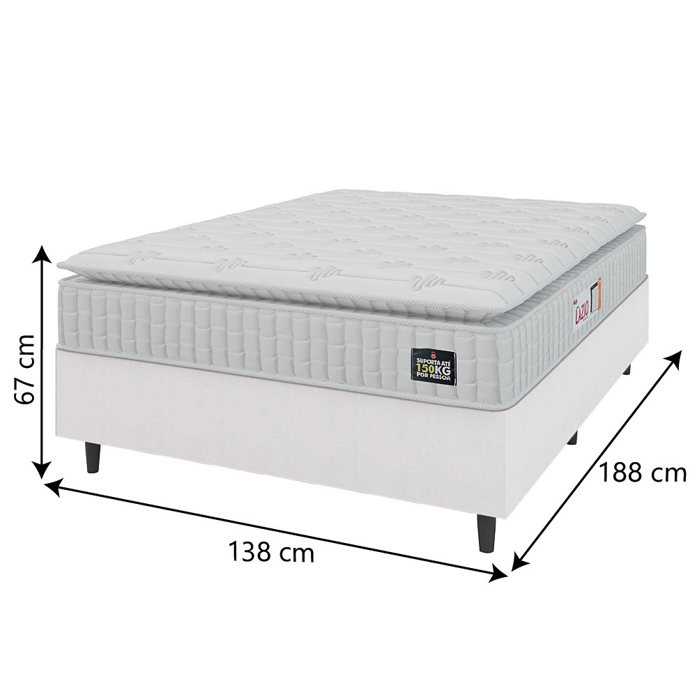 Cama Box Colchão Casal Espuma D45 Lazio Pillow Top 138x188x67cm Branco Linho Hellen - Suporta até 120kg por Pessoa