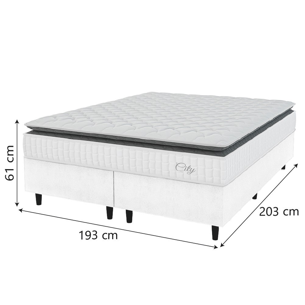 Cama Box Colchão Casal King Molas Ensacadas City Pillow Top 193x203x61cm Linho Branco/Cinza Hellen