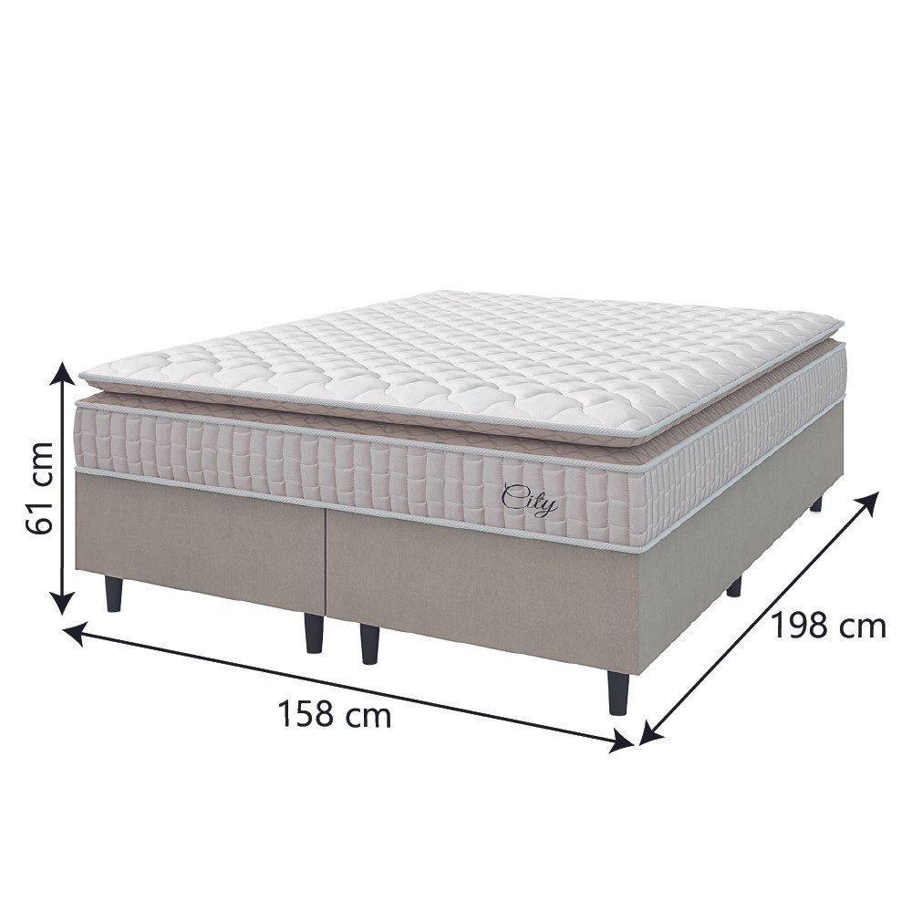 Cama Box Colchão Casal Queen Molas Ensacadas City Pillow Top 158x198x61cm Branco / Bege Hellen