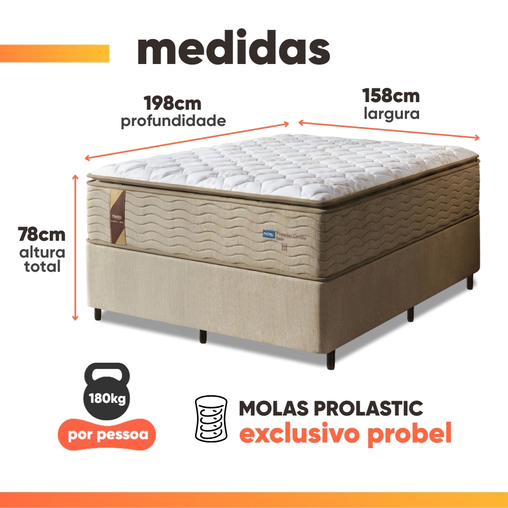 Cama Box Colchão Casal Queen Molas Guarda Costas Max Pillow Top 158x198x78cm Bege / Branco Probel