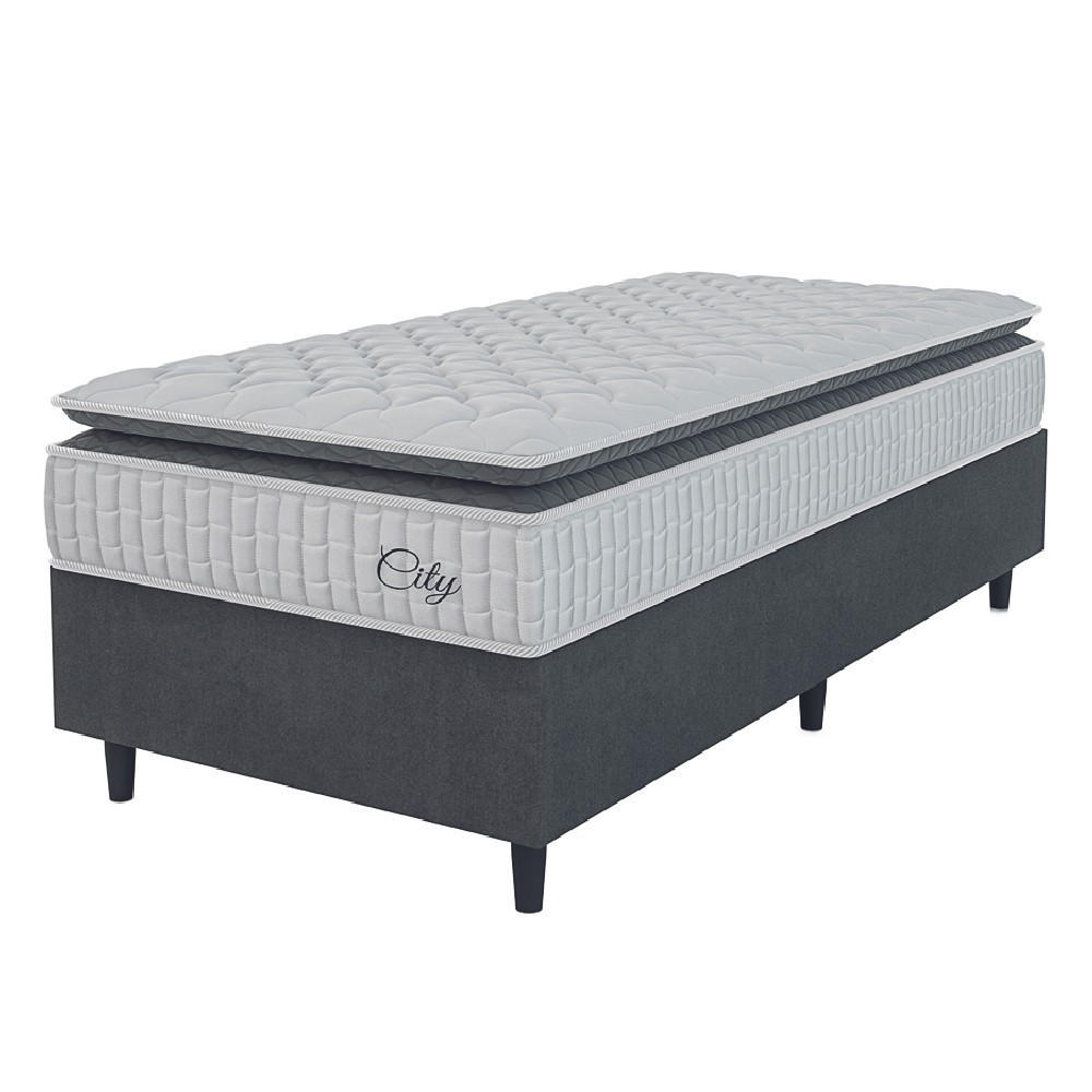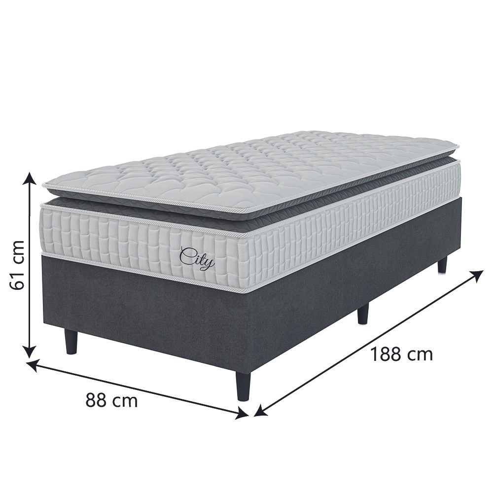 Cama Box Colchão Solteiro Molas Ensacadas City Pillow Top 88x188x61cm Branco / Cinza Hellen