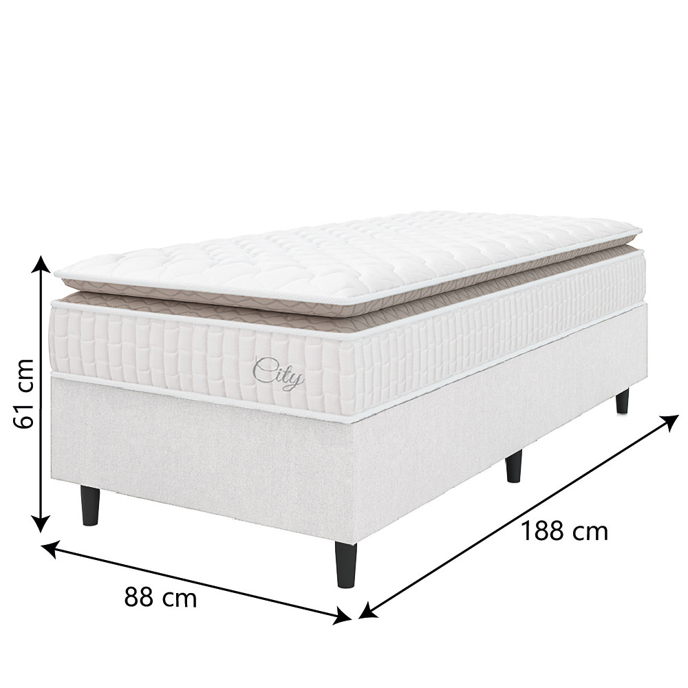Cama Box Colchão Solteiro Molas Ensacadas City Pillow Top 88x188x61cm Linho Branco / Bege Hellen
