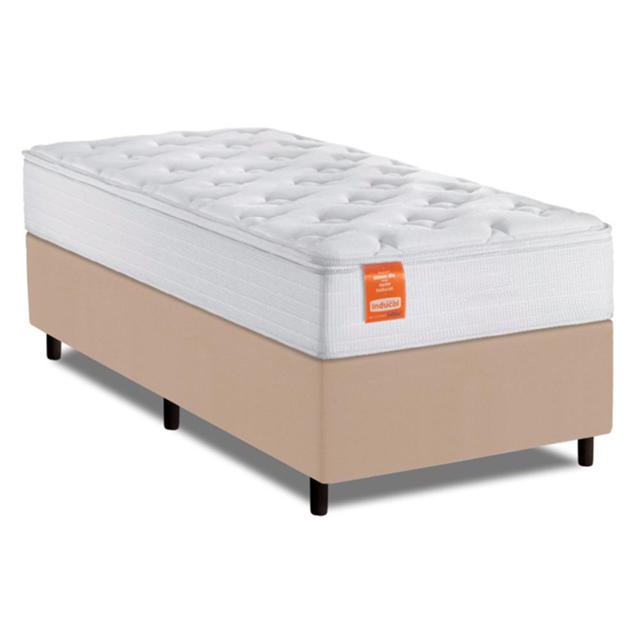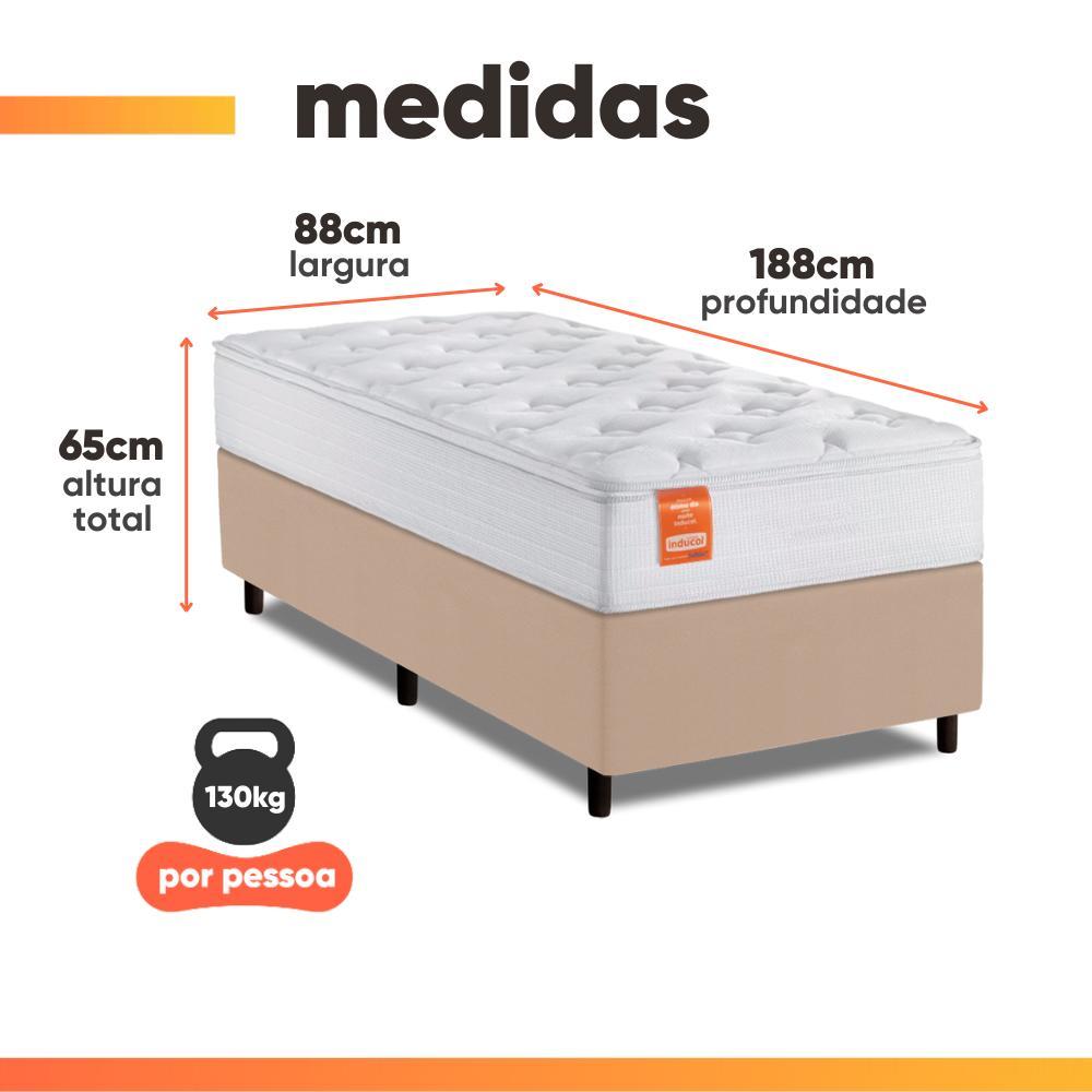 Cama Box Colchão Solteiro Molas Ensacadas Real 88x188x65cm Branco / Bege Inducol - Suporta até 130kg por Pessoa