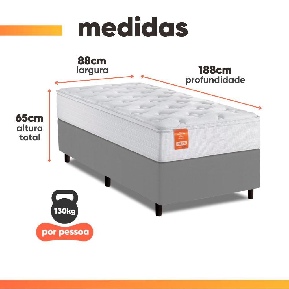 Cama Box Colchão Solteiro Molas Ensacadas Real 88x188x65cm Branco / Cinza Inducol - Suporta até 130kg por Pessoa