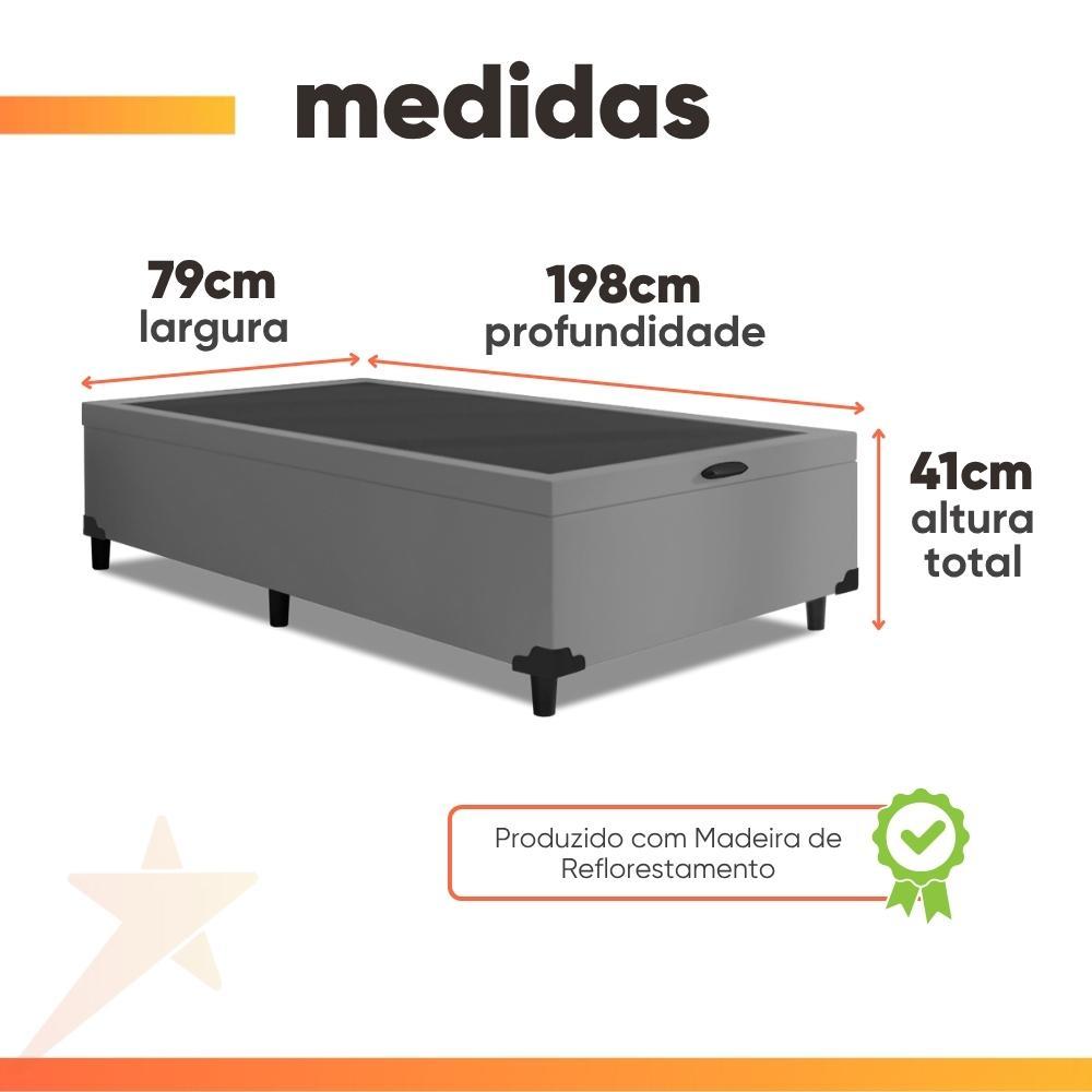 Cama Box com Baú 0,79m com 41cm de Altura Prince Cinza