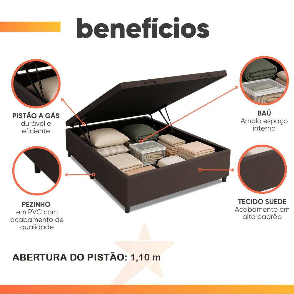 Cama Box com Baú Casal 1,38m com 41cm de Altura Prince Suede Marrom