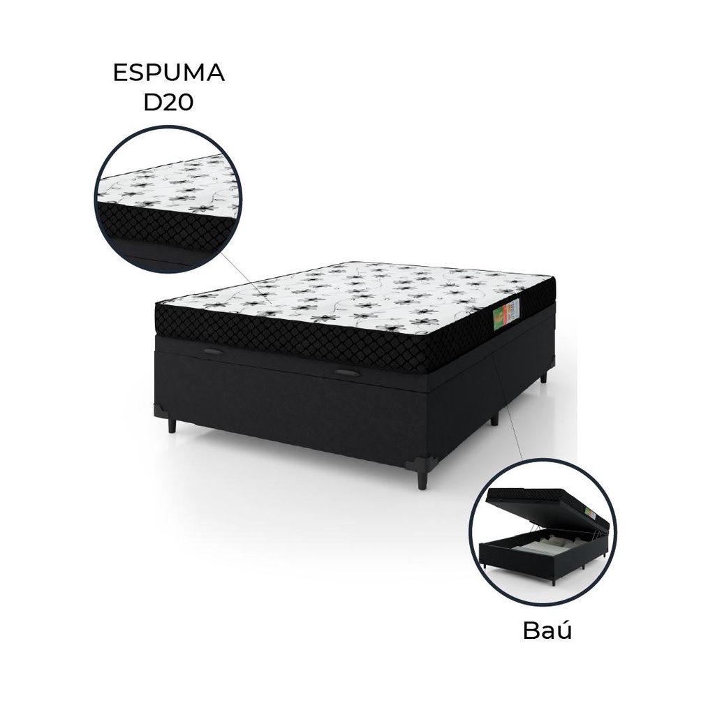 Cama Box Com Baú Casal Colchão Espuma 138x188x53cm Polar Branco / Preto