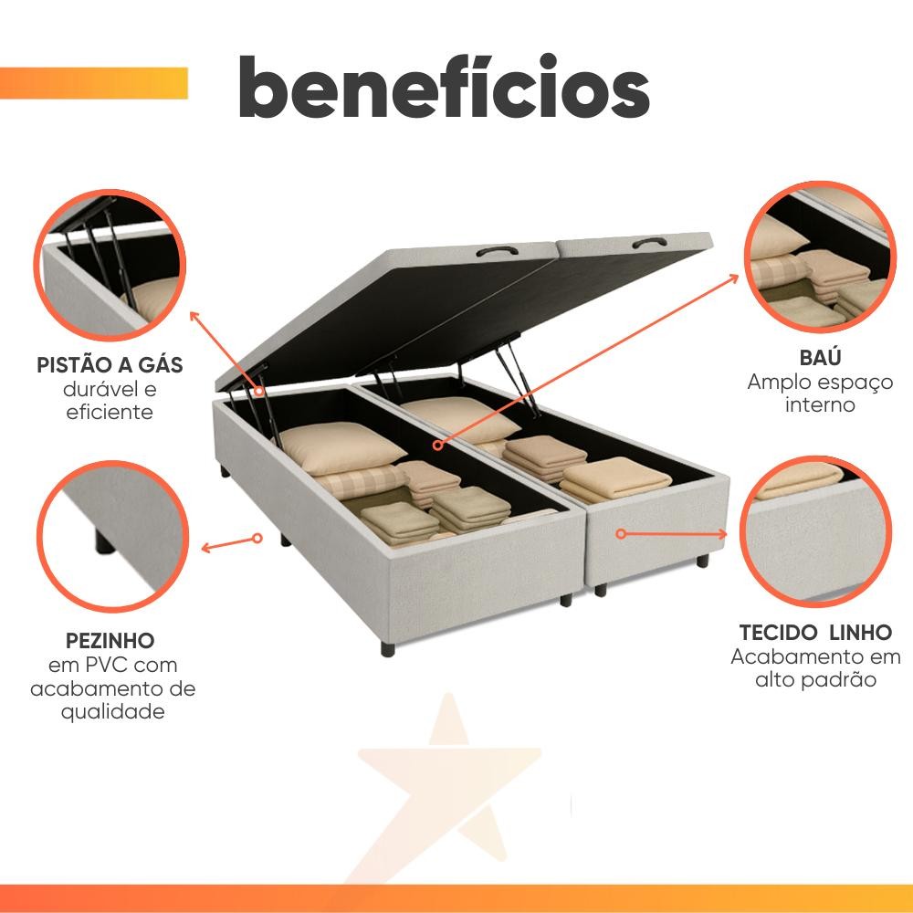 A Cama Box Bipartida com Baú é a escolha ideal para quem busca praticidade, conforto e um toque moderno no quarto. Com estrutura resistente em madeira de eucalipto e pinus, ela oferece durabilidade e segurança, além de um belo acabamento em tecido suede, fácil de limpar e extremamente elegante. Seu sistema de abertura fácil do baú permite um aproveitamento inteligente do espaço, ideal para guardar roupas, travesseiros, edredons e objetos pessoais, mantendo tudo sempre organizado. Por ser bipartida, também facilita o transporte e a instalação, principalmente em ambientes com espaços mais reduzidos. Além disso, acompanha jogo de pés em PVC, garantindo estabilidade e completando o visual moderno do móvel. A Cama Box com Baú é perfeita para transformar seu quarto em um ambiente mais bonito, funcional e acolhedor. MEDIDAS (cada um): [ A ] = 41 cm / 35 cm (sem pés) [ L ] = 96 cm [ P ] = 203 cm PESO: 83,5 kg SUPORTA ATÉ: 300 kg por pessoa PÉS: 6 cm MODELO: Cama Box Com Baú King 1,93m Suede MARCA: Prince MATERIAL DA ESTRUTURA: Eucalipto e Pinus COR: Marrom TECIDO: Suede MATERIAL DOS PÉS: PVC QUANTIDADE DE PÉS: 12 GARANTIA: 3 Meses ITENS INCLUSOS: 2 Box Baú de 0,96m A Esplanada Móveis se responsabiliza pela entrega dos produtos adquiridos até a porta de entrada ou portaria do endereço indicado, se a portaria do condomínio permitir, as entregas são efetuadas no piso térreo e é de responsabilidade do cliente a locomoção da mercadoria até seu apartamento ou casa. Confira as dimensões do produto e certifique-se de que estão adequadas aos elevadores, portas e corredores do local da entrega. Não fazemos a montagem, desmontagem do produto e/ou portas e janelas, locomoção pela escada ou içamento pelo lado de fora do prédio. Não está incluso na entrega o deslocamento até o interior do apartamento, com ou sem elevador, ou deslocamento em locais de difícil acesso como escadarias. Caso o cliente necessite de entrega dentro das dificuldades mencionadas, deverá entrar em contato para análise e dúvidas. Certifique-se de tudo antes de finalizar a compra, evitando assim futuros desagrados ou imprevistos com a entrega.