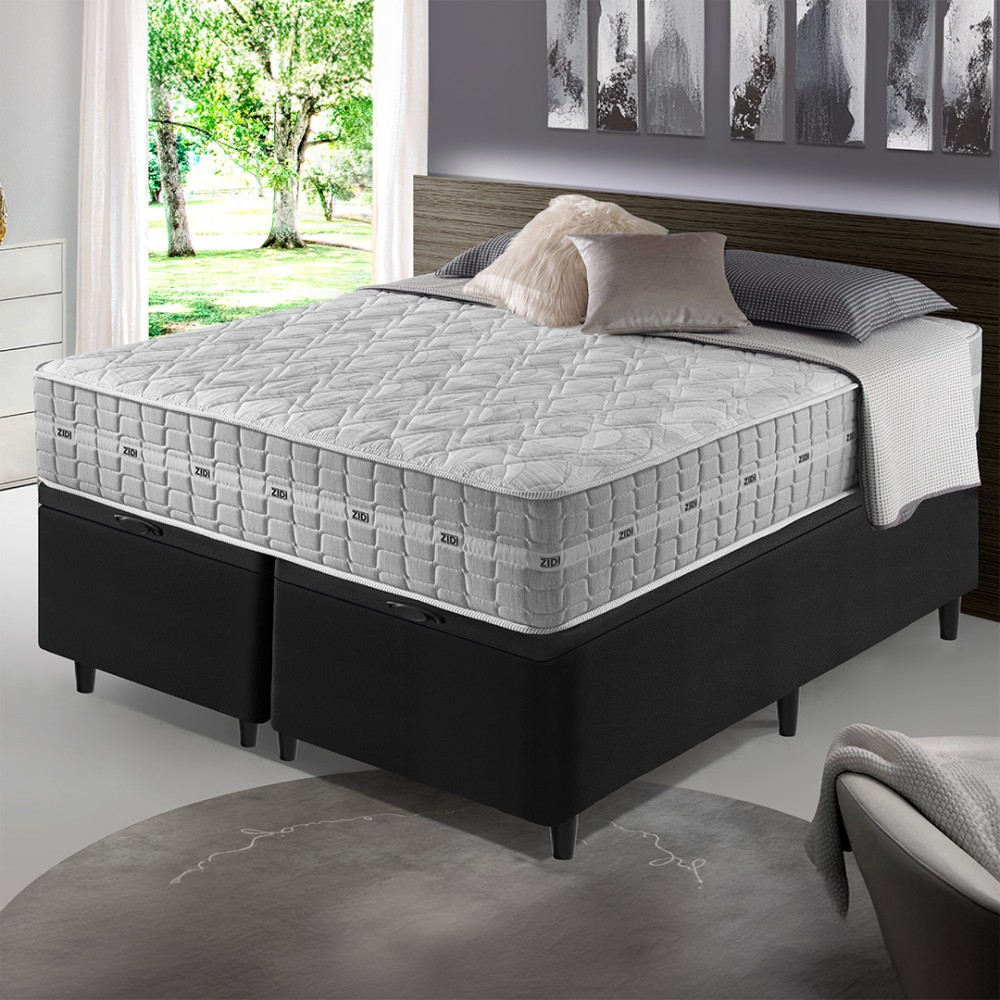 Cama Box com Baú King Size Preta + Colchão Molas Ensacadas Alabama 193x203x66cm