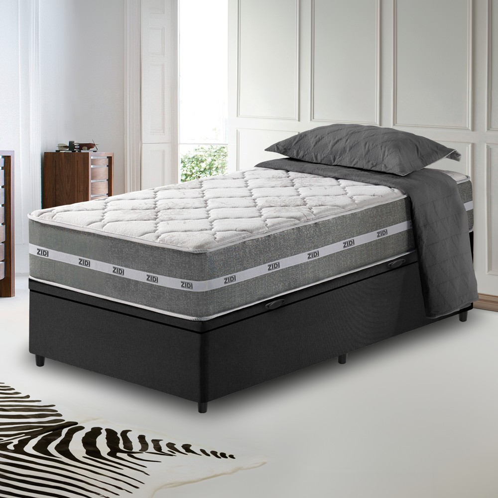 Cama Box Com Baú Solteiro Preto + Colchão Molas Ensacadas Miami 88x188x64cm