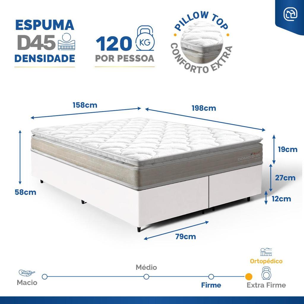 Cama Box com Colchão de Espuma D45 Pillow Top Ortopédico Domo Queen 158cm