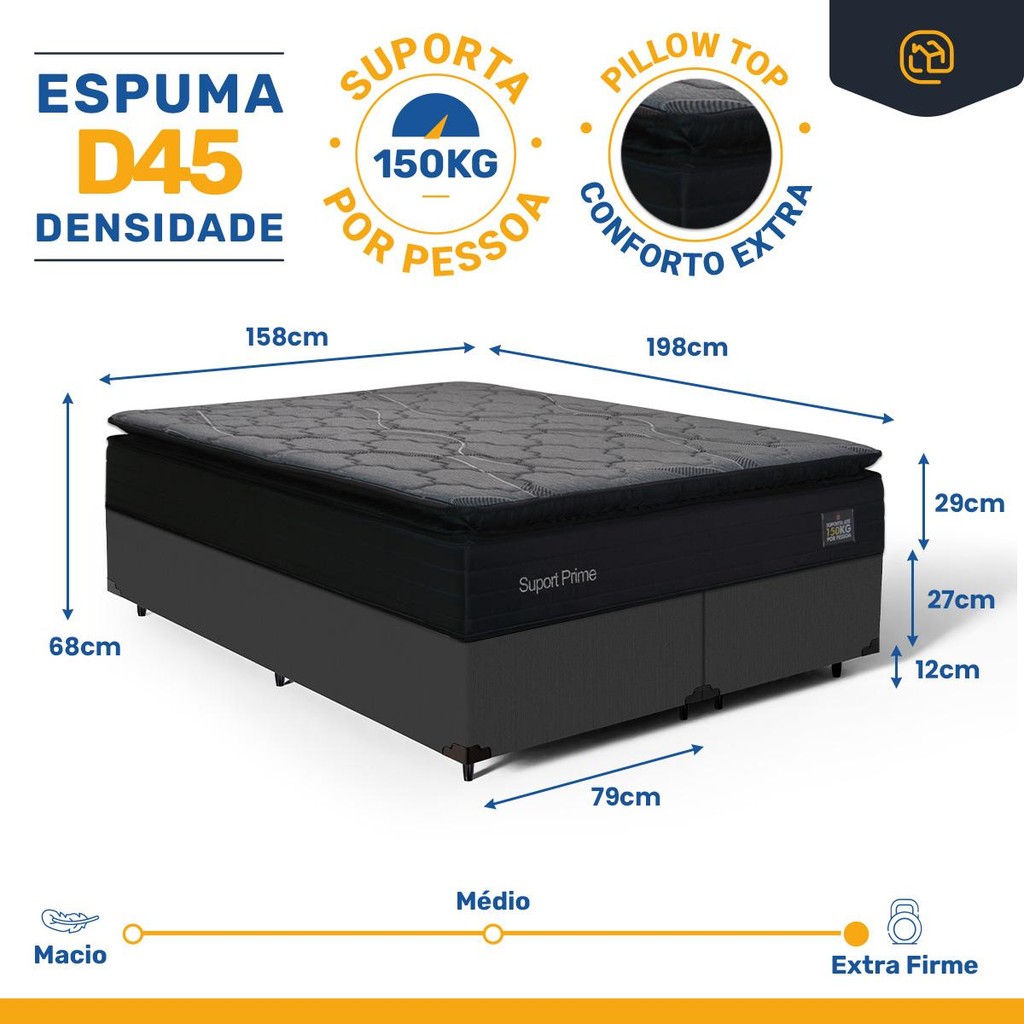 Cama Box com Colchão de Espuma D45 Pillow Top Suport Prime Queen 158cm