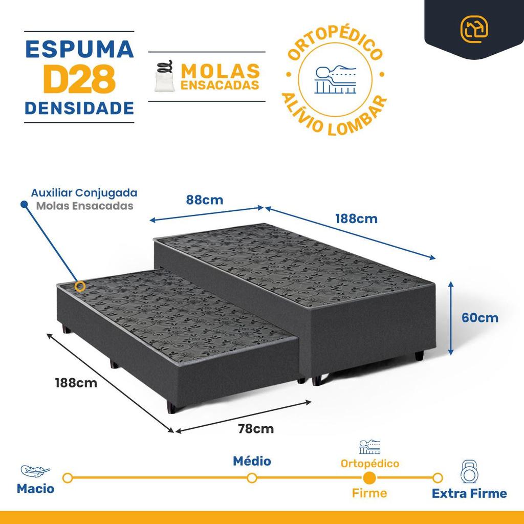 Cama Box com Colchão de Espuma e Auxiliar de Molas Unique 3 em 1 Solteiro 88cm