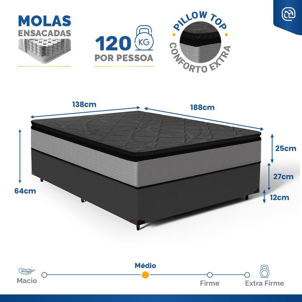 Cama Box com Colchão de Molas Ensacadas Pillow Top UmaFlex Vitta Casal 138cm