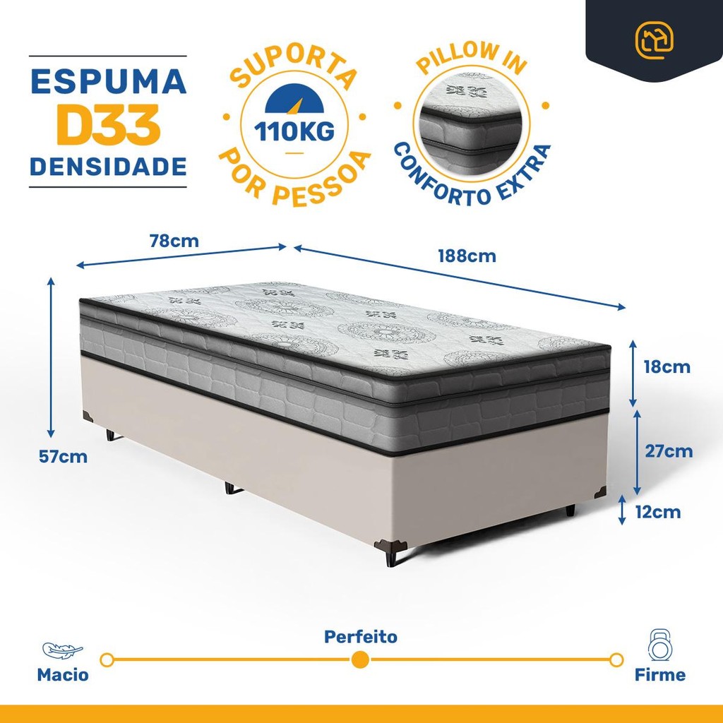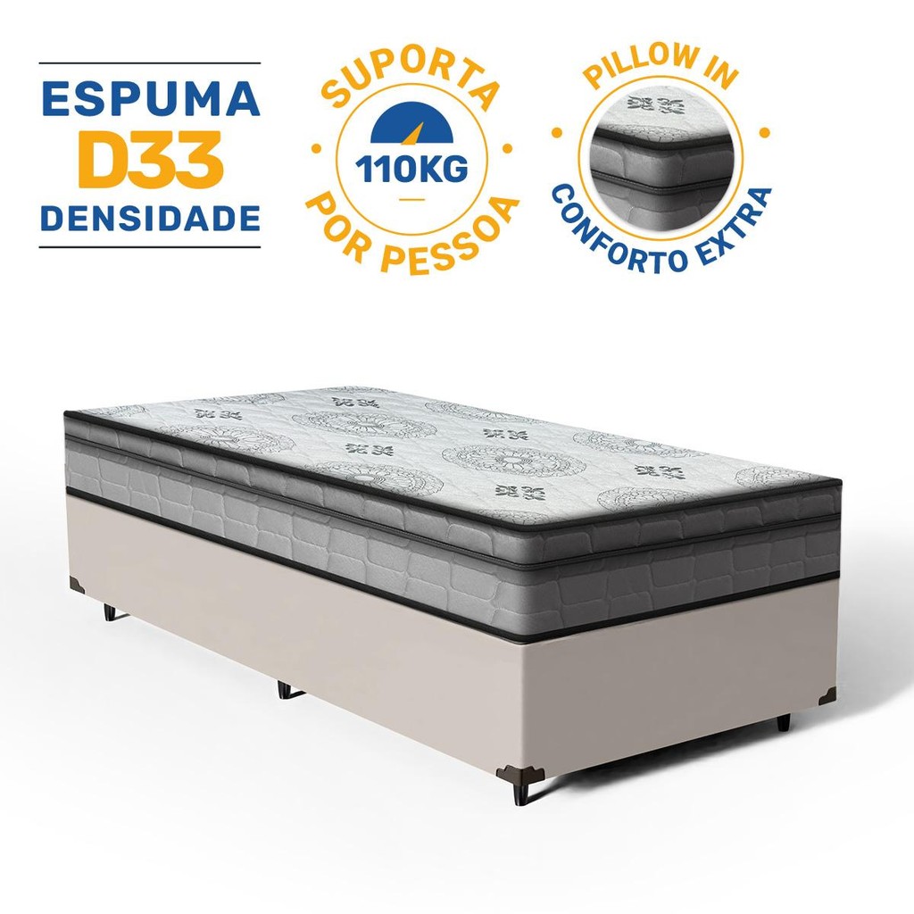 Cama Box com Colchão Espuma D33 Pillow In Anjos Ortosleep Solteiro 78cm