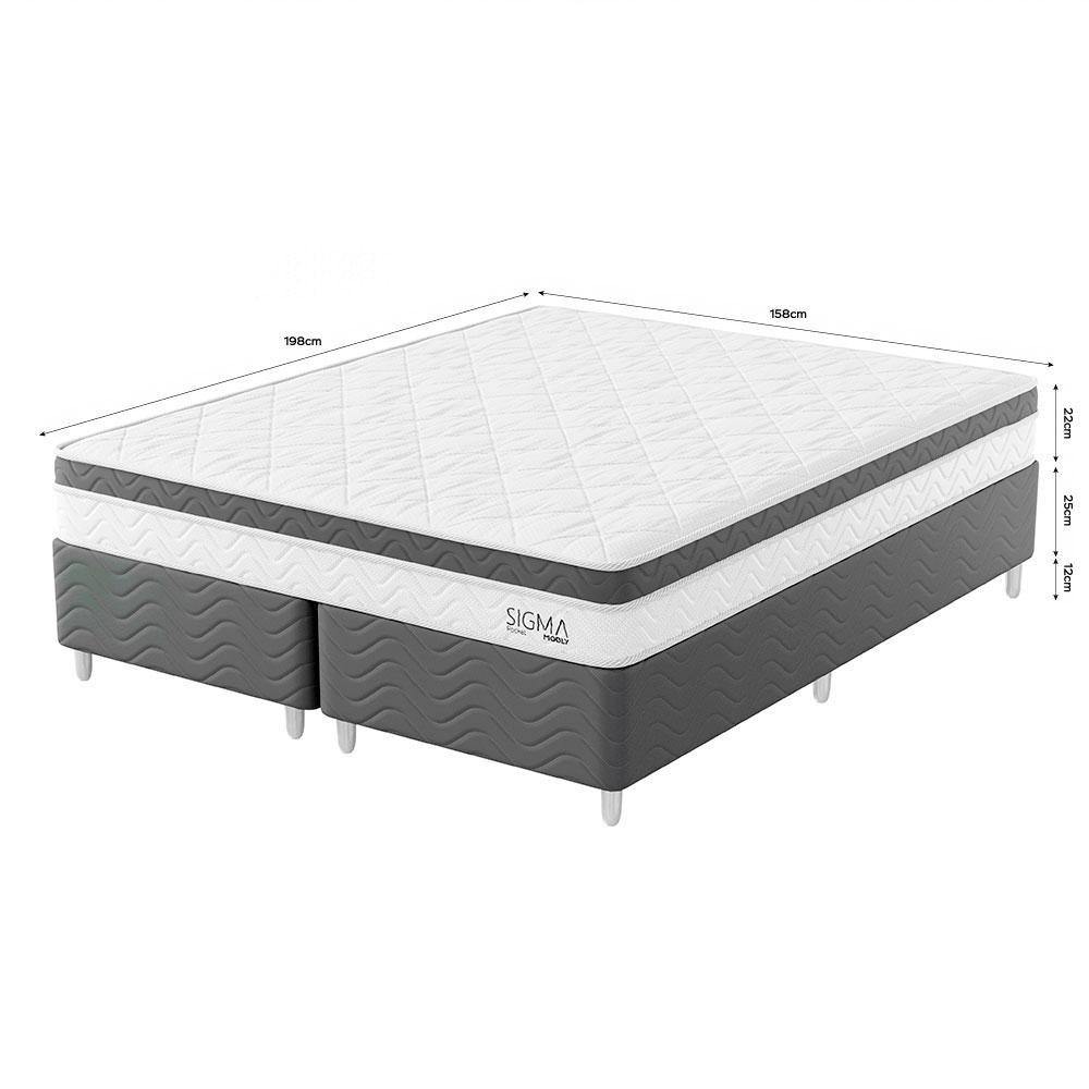 Cama Box com Colchão Queen Sigma Molas Ensacadas (22x158x198) Branco e Cinza