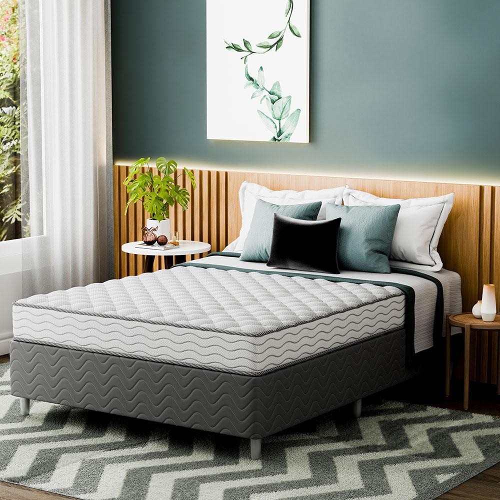 Cama Box com Colchão Viúva Howie Espuma D45 (17x128x188) Branco e Cinza
