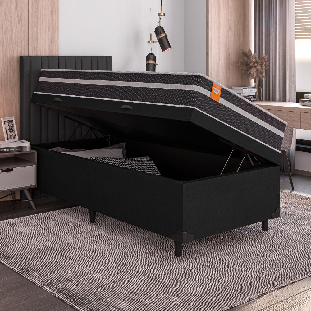 Cama Box Solteiro Baú Colchão Molas Qatar 88x188x63cm Branco / Preto - Suporta até 150Kg