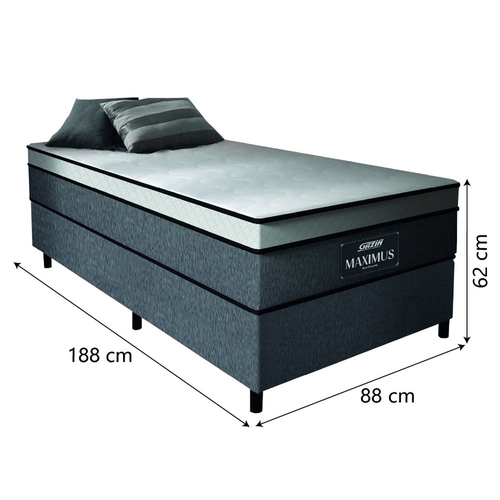 Cama Box Solteiro Colchão Gazin Maximus Molas Ensacadas 88x188x62cm Linho Grafite / Preto - Suporta até 120Kg por Pessoa