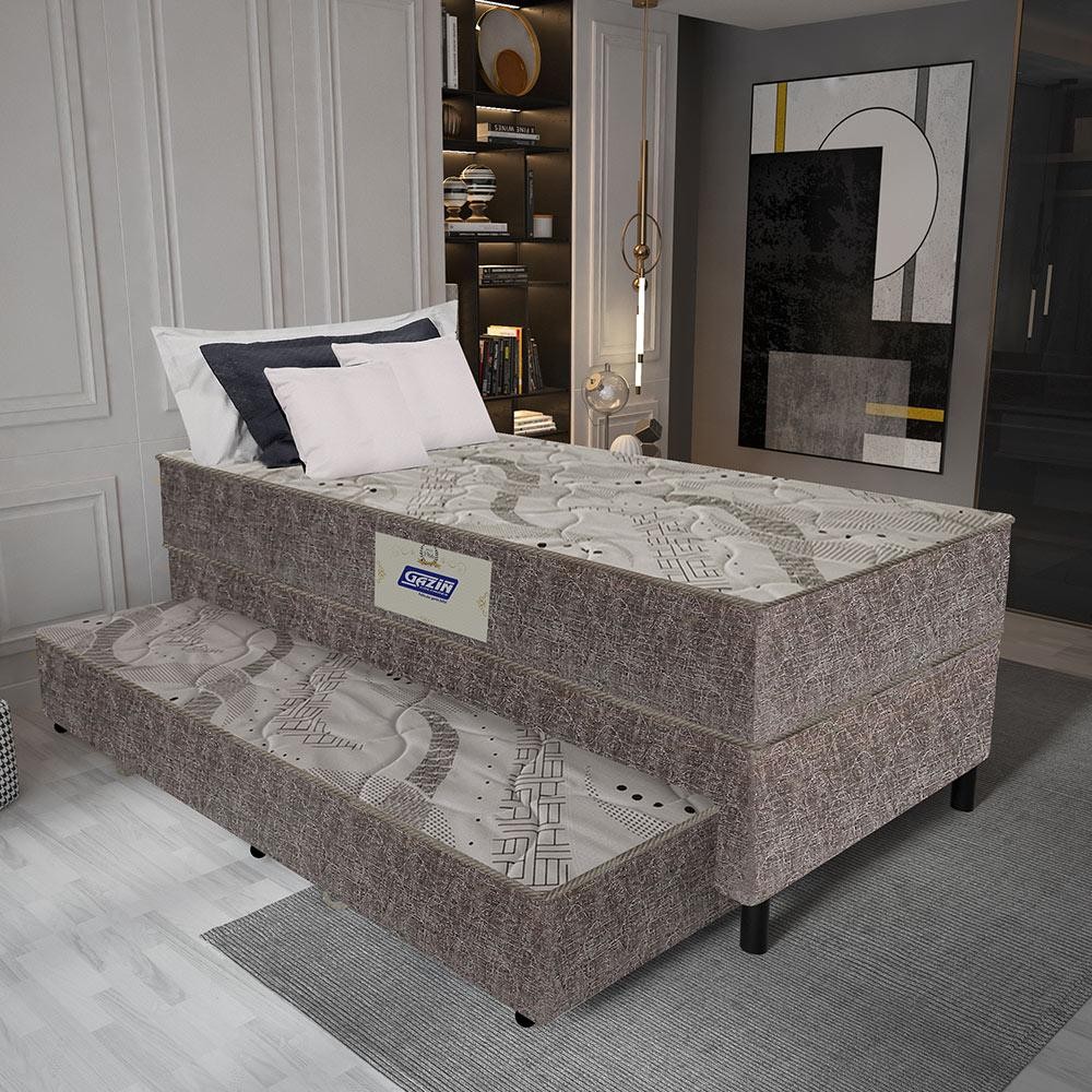 Cama Box Solteiro Conjugada Gazin 88x188cm Molas Bonnel com Cama Auxiliar D-26 Praticidade