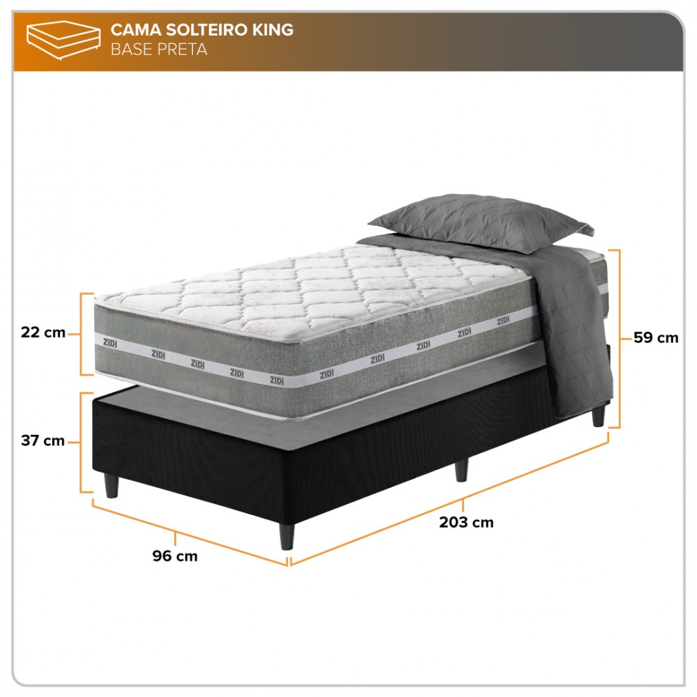 Cama Box Solteiro King Preto + Colchão Molas Ensacadas Miami 96x203x59cm