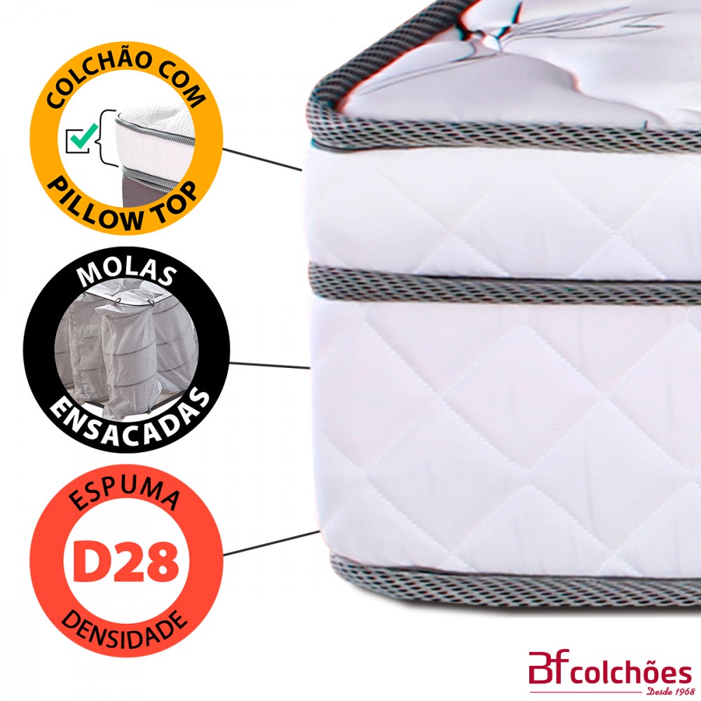 Cama Box Viúva Colchão Molas Ensacadas com Pillow e Box Courvin 128x188x55cm BF Colchões