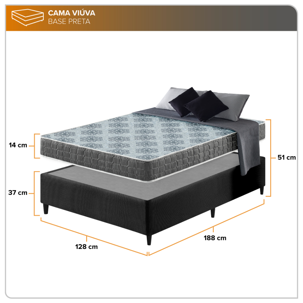 Cama Box Viúva Preta + Colchão Washington Espuma D23 Liso 128x188x51cm