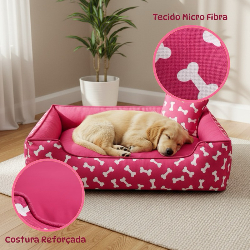 Cama Caminha Pet Enchimento Siliconado e Zíper Removível Cão Gato Grande, Medio, Pequeno