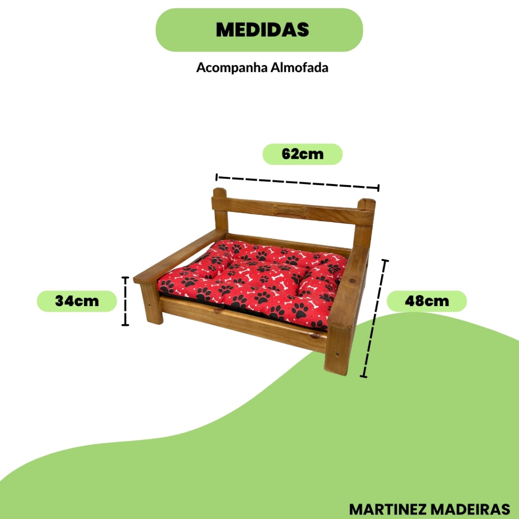 Cama Caminha Pet Sofá de Madeira com Almofada Variada Cachorro Gato