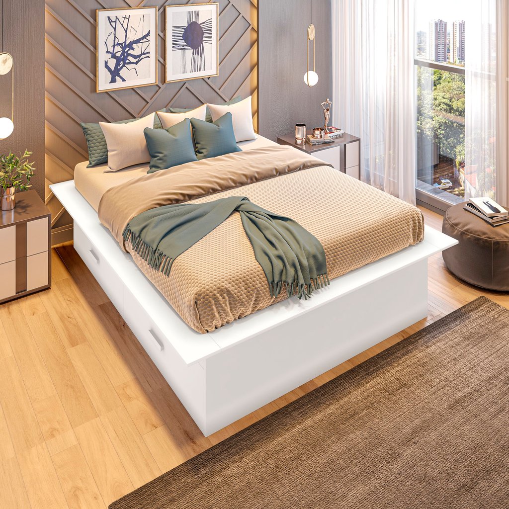 Cama Casal Adulto com 4 Gavetas Gades Yescasa Branco Perfect Wood