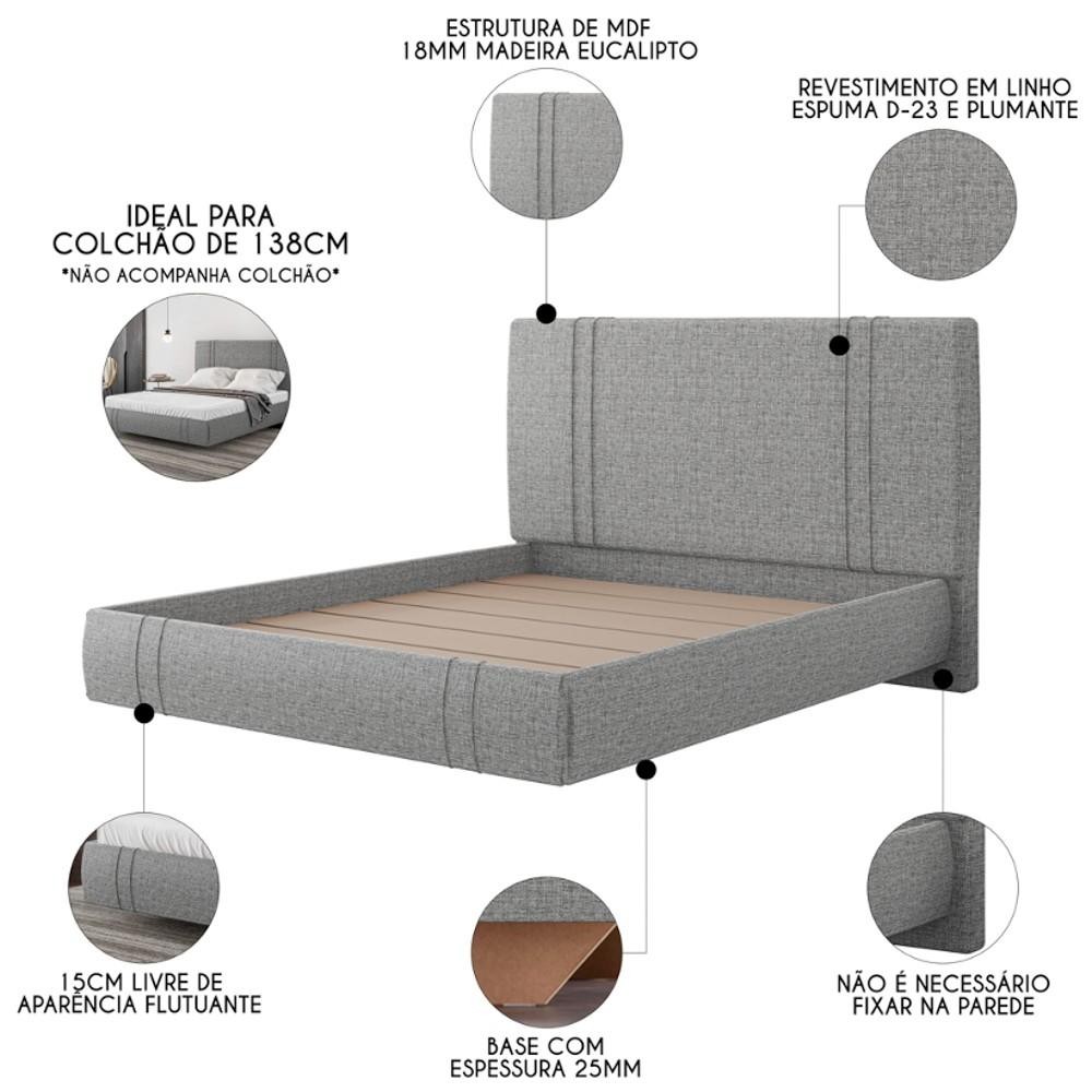Cama Casal Flutuante Com Cabeceira 140cm Lyra S05 Linho Cinza - Mpozenato