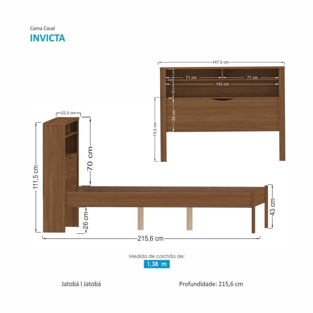 Cama Casal Invicta com Baú Jatoba