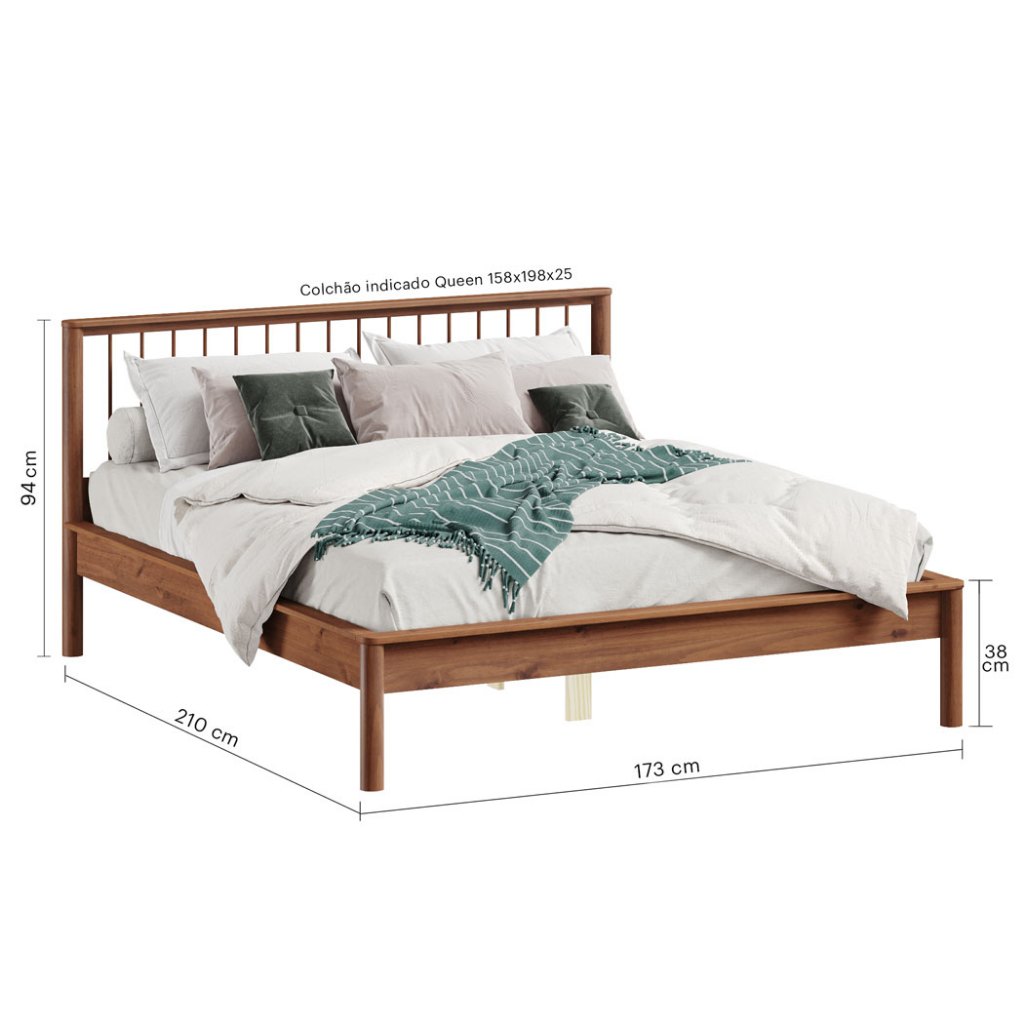 Cama Casal Queen de Madeira Maciça Moderna Apoana Castanho