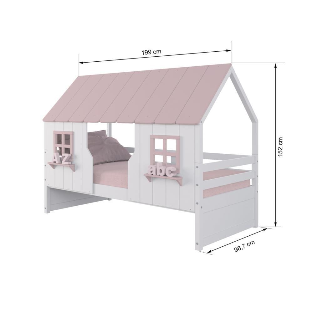 Cama Casinha Encantada Madeira Maciça Branco/ Rosa Housin
