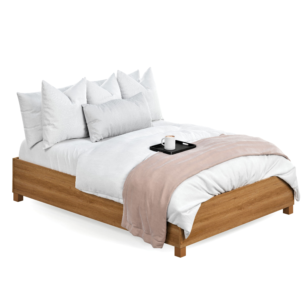 Cama de Casal Zeni com Estrado Reforçado Estrutura Resistente Sem Cabeceira Cor Branco ou Cinamomo