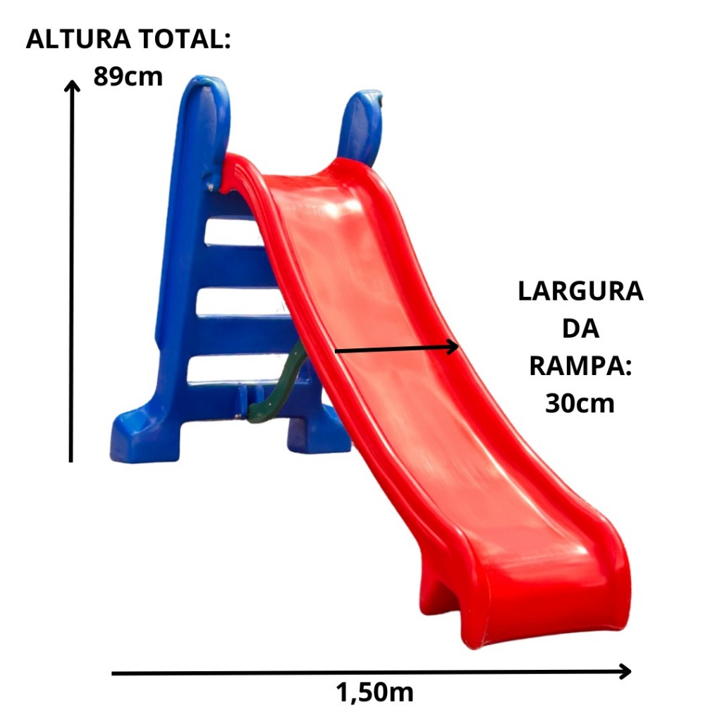 POR FAVOR, LEIA A DESCRIÇÃO COMPLETA!!! CAMA ELÁSTICA NACIONAL REDONDA MEDIDAS (VALORES APROXIMADOS): - Diâmetro total: 1,83m - Diâmetro lona de salto (gancho a gancho): 1,46m - Altura total: 1,68m - Altura do chão a lona: 50cm ESPECIFICAÇÕES: - Estrutura em aço galvanizado; - Acessórios com proteção UV; - Sistema de impulsão por 30 molas; - 3 pés em formato de U; - Rede de proteção em polipropileno multicolorida; - Sistema de montagem do trampolim por encaixe (fácil de montar); - Suporta até 60 kg; - Lona de salto; (A cor varia de acordo com a disponibilidade do estoque, não é possível escolher a cor da lona); - Protetor de Molas; - GARANTIA DE FÁBRICA: 90 DIAS!!! - IMAGEM MERAMENTE ILUSTRATIVA, A COR VARIA DE ACORDO COM DISPONIBILIDADE EM ESTOQUE. ESCORREGADOR MÉDIO - Com escada de 03 (três) degraus. -Prancha tipo tobogã em cores vibrantes e diversificadas; -Bordas salientes para maior segurança das crianças; Pigmento que não desbota com sol e chuva, garantindo a resistência e durabilidade do produto; - Material: Polietileno, atóxico, aditivado com anti UV; - Medidas: (C) 1,55m x (L) 62cm x (A) 98cm; - Processo de fabricação: Roto moldagem; - Peso: 08 kg; - Peso suportado: 30kg; AS CORES SERÃO ENVIADAS DE ACORDO COM O ESTOQUE!!!