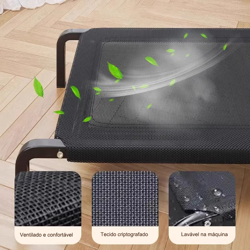 Cama Elevada Dobrável para Cães – Estrutura Metálica Resistente, Respirável e Portátil para Uso Interno e Externo