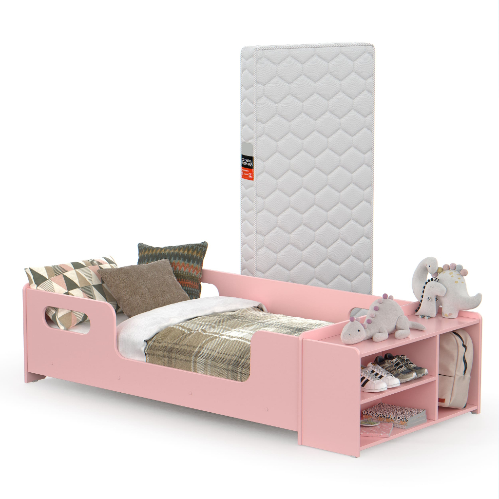 Cama Infantil Aconchego com Colchão e Sapateira em MDF – Para Quarto de Meninos e Meninas