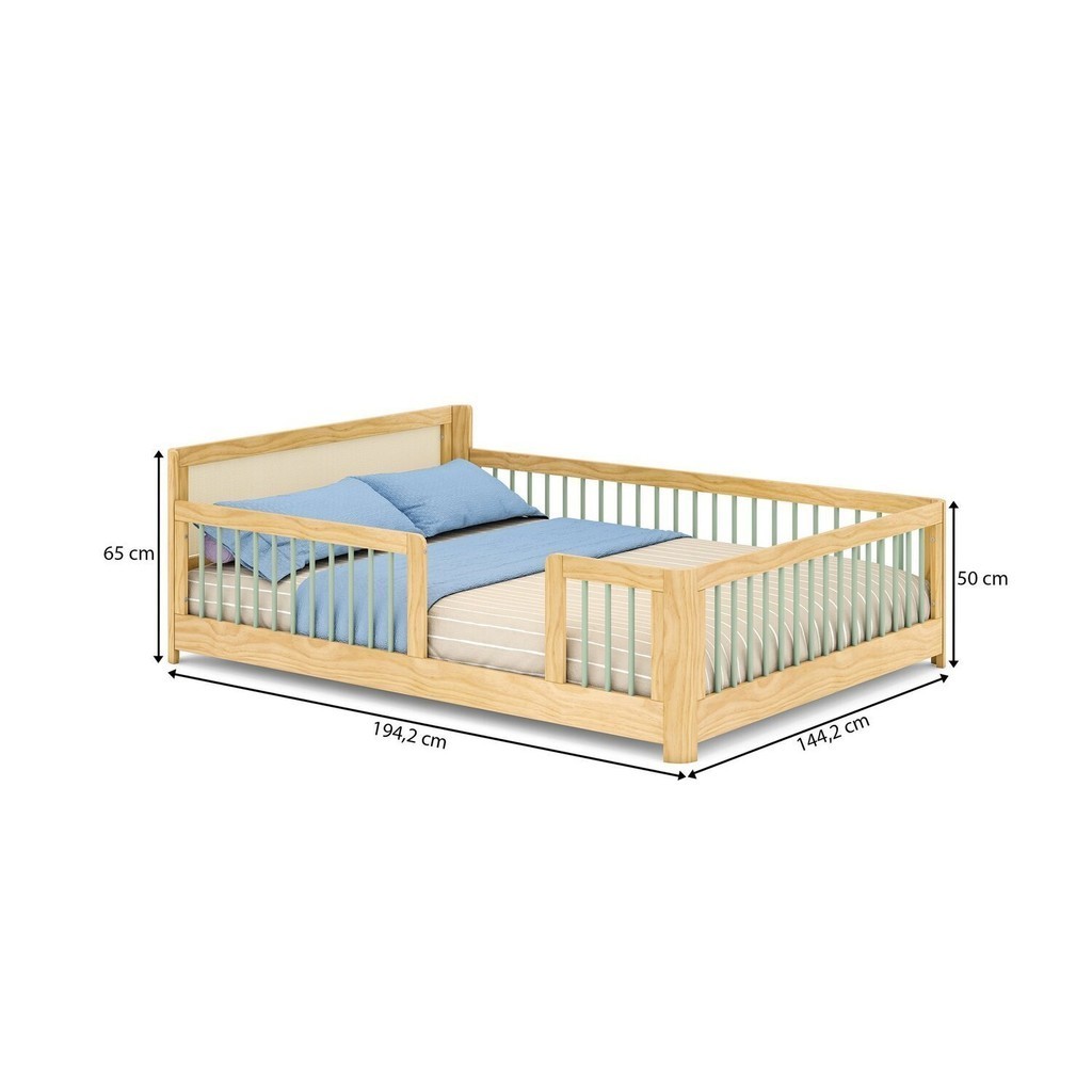 A Cama Montessoriana Wave com Rattan e cantos arredondados e grade palito , é perfeita para garantir mais autonomia aos pequenos. No modelo casal, garante mais espaço para sonecas e brincadeiras em família. Um projeto lindo, perfeito para trazer magia ao quarto. Estrutura em madeira maciça clear , ou seja, madeira selecionada e sem nós, realçando a beleza natural da madeira, grade em palito, onde conta com acabamento em laca, dando aquele toque macio no produto e realçando a beleza da madeira. A marca Casatema é especializada em Móveis infantis no conceito lúdico, onde a diversão e segurança fazem parte do design de cada peça. Todo o processo de construção de nossos móveis é baseado nas experiências de nossas crianças, o que torna nossos produtos inovadores no mercado! Modular: Não Peso (kg): 34 Garantia: 12 Meses Altura (cm): 65 Acabamento: Laca Largura (cm): 194.2 Possui Baú: Não Possui Pés: Não Possui Portas: Não Possui Gavetas: Não Suporta Até (kg): 180 Profundidade (cm): 144.2 Tamanho da Cama: Casal Tipo de Estrado: Fixo Escala de Brilho: Semi-Brilho Serviço Montagem: 114259443 Acompanha Colchão: Não Origem do Produto: Nacional Ambiente Principal: Quarto Infantil Material Principal: Madeira Maciça Possui Prateleiras: Não Material do Estrado: Madeira Acompanha Cama Auxiliar: Não Altura do Estrado até o Chão: 8.8 Permite a Utilização de Cama Auxiliar: Não Marca: Casatema Cor: Verde/Natural Cor do Produto: Verde/Natural Itens Inclusos: 1 Cama, Kit Ferragens e Manual de Montagem Cor Predominante: Bege Linha ou Coleção: Wave Tamanho do Colchão Indicado (L x C): 188x138