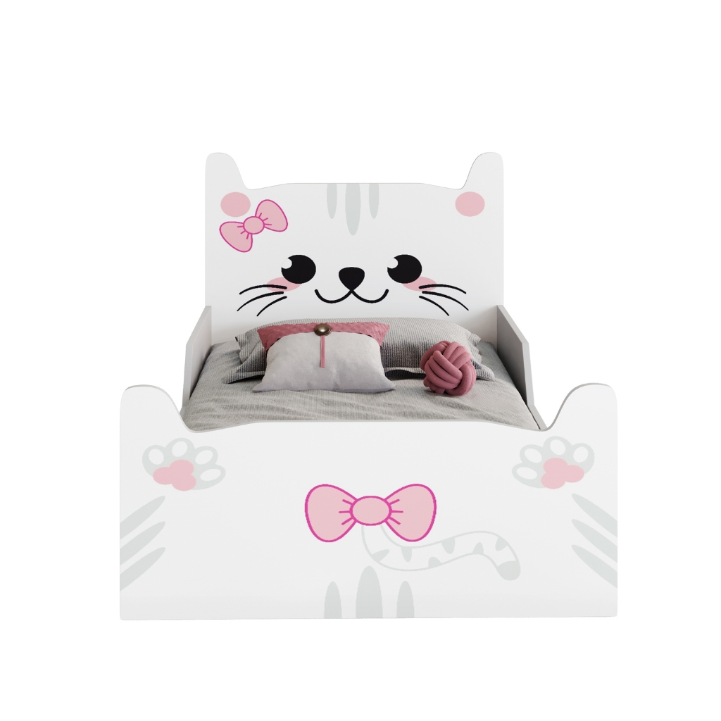 Cama Infantil Gatinho Rosa em MDF Juvenil Decorada para Quarto de Menina montessoriana