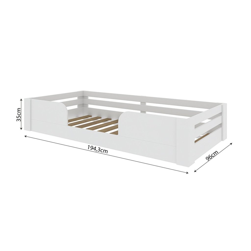 A Cama Infantil Montessoriana Liz é lúdica no que se refere a decoração infantil, perfeita para decorar o quarto do seu pequeno de forma inovadora, divertida e segura. Sua estrutura é próxima ao chão, permitindo a criança mais autonomia além de estimular o seu desenvolvimento. Não perca tempo, seu filho merece muito! Estilo: Moderno Modular: Não Peso (kg): 24 Garantia: 06 Meses Altura (cm): 35 Acabamento: BP Largura (cm): 194.3 Possui Baú: Não Possui Pés: Sim Tipo de Cama: Montessoriana Possui Portas: Não Altura dos Pés: 1.5 Possui Gavetas: Não Possui Rodízio: Não Suporta Até (kg): 100 Profundidade (cm): 96 Tamanho da Cama: Solteiro Tipo de Estrado: Fixo Acompanha Dossel: Não Escala de Brilho: Semi-Brilho Material dos Pés: Plástico Acompanha Colchão: Não Origem do Produto: Nacional Ambiente Principal: Quarto Infantil Fabricação Própria: Sim Material Principal: MDF Possui Prateleiras: Não Material do Estrado: Madeira Multilaminada Sapatas Niveladoras: Não Acompanha Cama Auxiliar: Não Altura do Estrado até o Chão: 1.5 Cama Auxiliar Suporta Até (kg): 100 Peso Suportado por cada Cama: 100 Permite a Utilização de Cama Auxiliar: Não Marca: Casatema Cor: Branco Perfect Wood Cor do Produto: Branco Itens Inclusos: 1 Cama Infantil, kit de ferragens e manual de montagem Cor Predominante: Branco Linha ou Coleção: Liz Tamanho do Colchão Indicado (L x C): 88x188