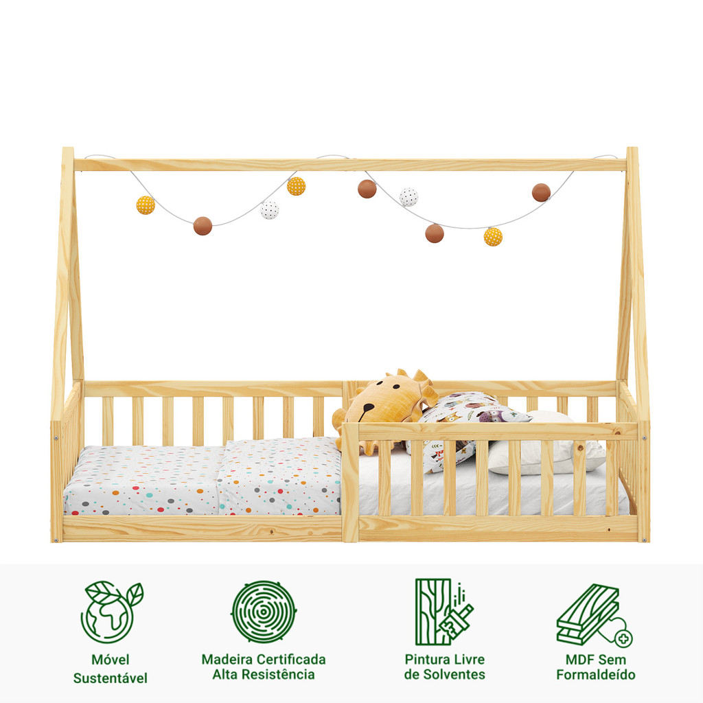 Cama Infantil Montessoriana Solteiro Madeira Casinha de Chão Nicolas Natural