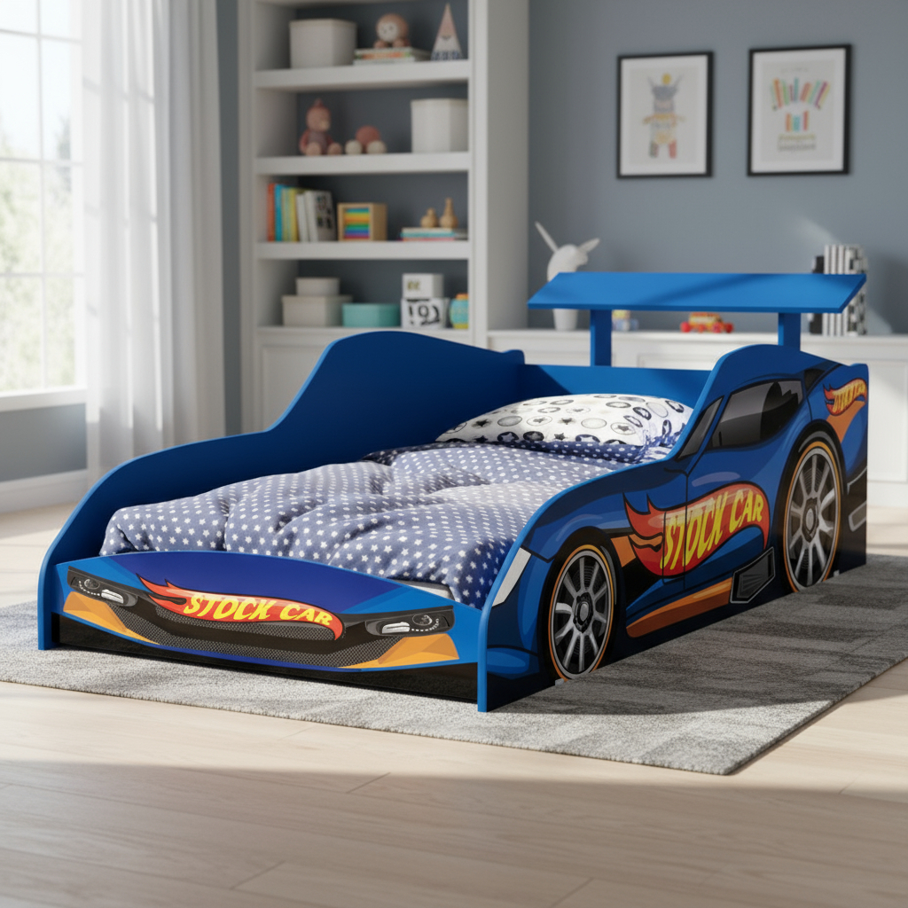 Cama Infantil Stock Car em MDF com Colchão Incluso Design Carro de Corrida para Quarto Infantil