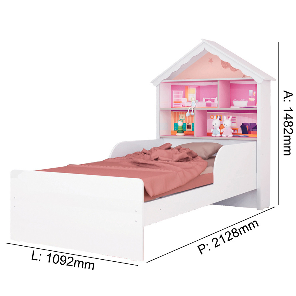 Cama Infantil Tuboarte Laura 100% MDF com Cabeceira Casa de Boneca
