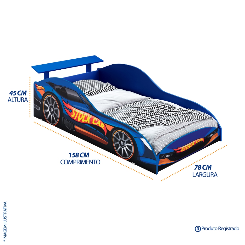 Cama Juvenil Temática Carro de Corrida com Colchão Incluso Perfeita para Quarto Infantil