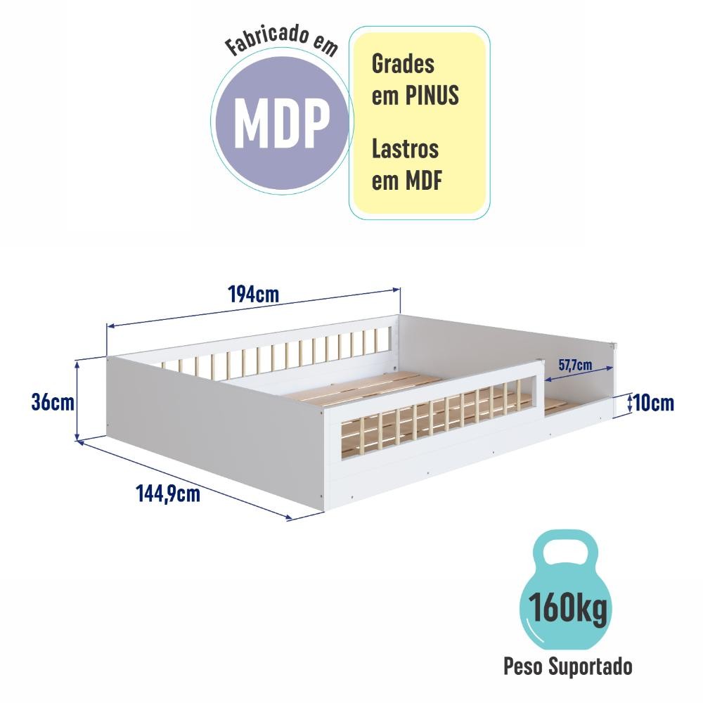 Cama Montessoriana Infantil Casal Affetto AFT016BCBC 188x138cm Branco - Completa Móveis