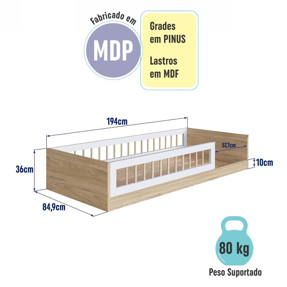 Cama Montessoriana Infantil Solteiro Affetto AFT015AVBC 188x78cm Aveiro Oak/Branco - Completa Móveis