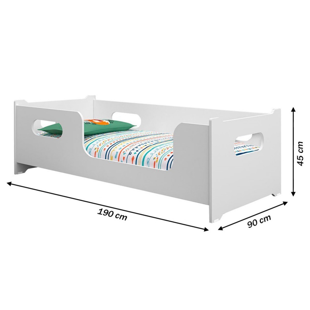 Descrição: O(a) Cama Montessoriano Encanto Branco - Gabrielli Móveis é produzido em MDF e MDP na escala de brilho Semi-Brilho, e possui um grau de dificuldade de montagem: Médio.Seu revestimento/acabamento é: Pintura UV. Infelizmente a Loja não oferece serviço de montagem, deixamos essa informação bem clara em todas as nossas páginas de produto. Onde especificamos que os móveis chegarão desmontados, e que a montagem fica por conta do cliente. Como não oferecemos esse serviço não embutimos o mesmo no preço dos produtos, ou seja, maior economia para você! Todos os nossos móveis também acompanham o manual de montagem, e caso você queira, pode realizar a montagem você mesmo, sempre especificamos os graus de montagem dos produtos. Nos casos de grau baixo e médio, com pouco ou nenhum conhecimento, você mesmo pode efetuar a montagem, e fazer essa economia. Apenas nos graus de montagem alto, recomendamos a contratação de um montador com experiência, visto que são montagens mais complicadas. A montagem é feita com Parafusos, cavilhas e Minifix.. Este móvel é indicado para que seja utilizado no(a) Quarto e Quarto Infantil, dando um toque especial no cômodo de sua casa. Para que você mantenha seu produto sempre em ótimo estado, recomendamos que use apenas um pano seco ou levemente umedecido, sem o uso de quaisquer produtos abrasivos. A Loja garante aos clientes, 90 dias de garantia nos produtos, porém, recomendamos que entre em contato com o fornecedor/marca do produto, pois o mesmo(a), pode garantir um prazo maior de garantia. Lembrando ainda que: quaisquer objetos decorativos que aparecem nas imagens, não acompanham o produto. Características: - Tipo de cama: Solteiro - Material da Estrutura: MDF e MDP - Necessita de Montagem: Sim - Como os Móveis Chegarão na Minha Casa: Desmontado em caixas, acompanhado de todas as peças, ferragens e manuais para montagem. - Grau de Dificuldade da Montagem: Médio - Sistema de Montagem: Parafusos, cavilhas e Minifix. - Observação: Objetos decorativos que aparecem nas imagens, não acompanham o produto. - Recomendação de Manutenção: Utilizar pano levemente umedecido, seguido de pano seco. Não utilizar quaisquer produtos abrasivos. - Indicação de Uso: Quarto e Quarto Infantil - Garantia (dias): 90 - Escala de Brilho: Semi-Brilho - Quantidade de Pés/Sapatas: 4 - Possui Sapatas?: Sim - Acompanha Mesa de Cabeceira: Não - Acompanha Espelho: Não - Colchão Indicado: Solteiro (88 cm de largura) - Acompanha Colchão: Não - Acompanha Cama Auxiliar: Não Possui - Revestimento /Acabamento: Pintura UV - Acompanha Cabeceira?: Não - Possui Rodízios?: Não - Possui Espelho?: Não - Possui Gavetas?: Não - Possui Portas?: Não - Possui Prateleiras?: Não - Possui Puxadores?: Não - Linha ou Coleção: Encanto - É frágil?: Sim - Possui Pés?: Não Dimensões: - Altura: 45,00 cm - Largura: 90,00 cm - Profundidade: 190,00 cm - Peso: 23,600 kg