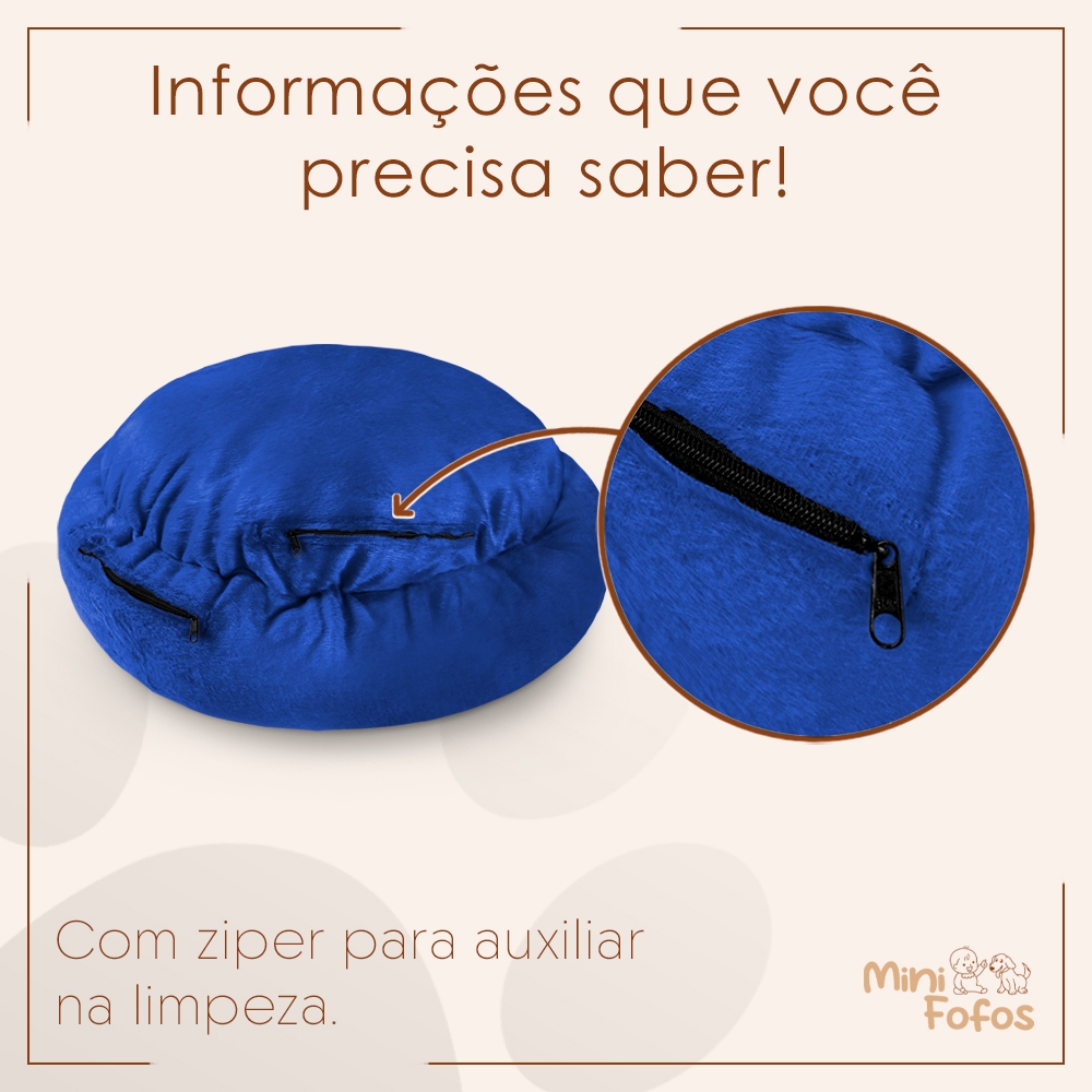 A caminha redonda para pets é produzida em velboa, um tecido macio e resistente, além de ser antialérgico para garantir o conforto do seu animal de estimação. Ela é adequada para cães e gatos, proporcionando conforto e segurança para seus animais de estimação. O enchimento é de fibras de silicone, que é extremamente macio e aconchegante, proporcionando um sono tranquilo para seu pet. O fundo da caminha é impermeável e antifriagem, para evitar que seu pet sofra com o frio. Ela possui zíper e sua limpeza é facilitada. A caminha pode ser lavada na máquina de modo suave ou a mão, garantindo a higiene do produto. Ela tem tamanho 50x50cm, ideal para pets de pequeno porte. Além desse, também está disponível em outros: M (60x60cm), G (70x70cm) e GG (90x90cm). Prontos para atender as necessidades de animais de estimação de diferentes tamanhos. Todos os modelos possuem as mesmas características de qualidade. *Indicada para pets de até 15kg. Raças indicadas: Pinchser, Yorkshire Terrier, Chihuahua, Dachshund, Poodle, Maltês, Pug, Bulldog Francês, etc. *ESPECIFICAÇÕES TÉCNICAS: - Material: Velboa; - Enchimento: Fibra de Silicone; - Medidas externas: 50x50x15cm; - Medidas internas: 30x30cm; - Fundo: Impermeável e Antifriagem; - Lavável: Sim, na máquina em modo suave ou a mão; - Peso suportado: até 15kg. *COMPOSIÇÃO: - Tecido: Velboa 100% Poliéster; - Fundo: Bagun 100% Poliéster; - Enchimento: Fibras de Silicone 100% Poliéster. *INSTRUÇÕES DE LAVAGEM: - 1º: Abra o zíper e retire todo o enchimento; - 2º: Faça a lavagem da capa na máquina em modo suave ou a mão; - 3º: Coloque o enchimento espalhando pela parte interna da caminha de forma que ela fique fofinha; - 4º: Pronto, sua caminha está pronta para o uso novamente e limpinha! Entre em contato conosco para mais informações e escolha o melhor tamanho para seu animal de estimação.