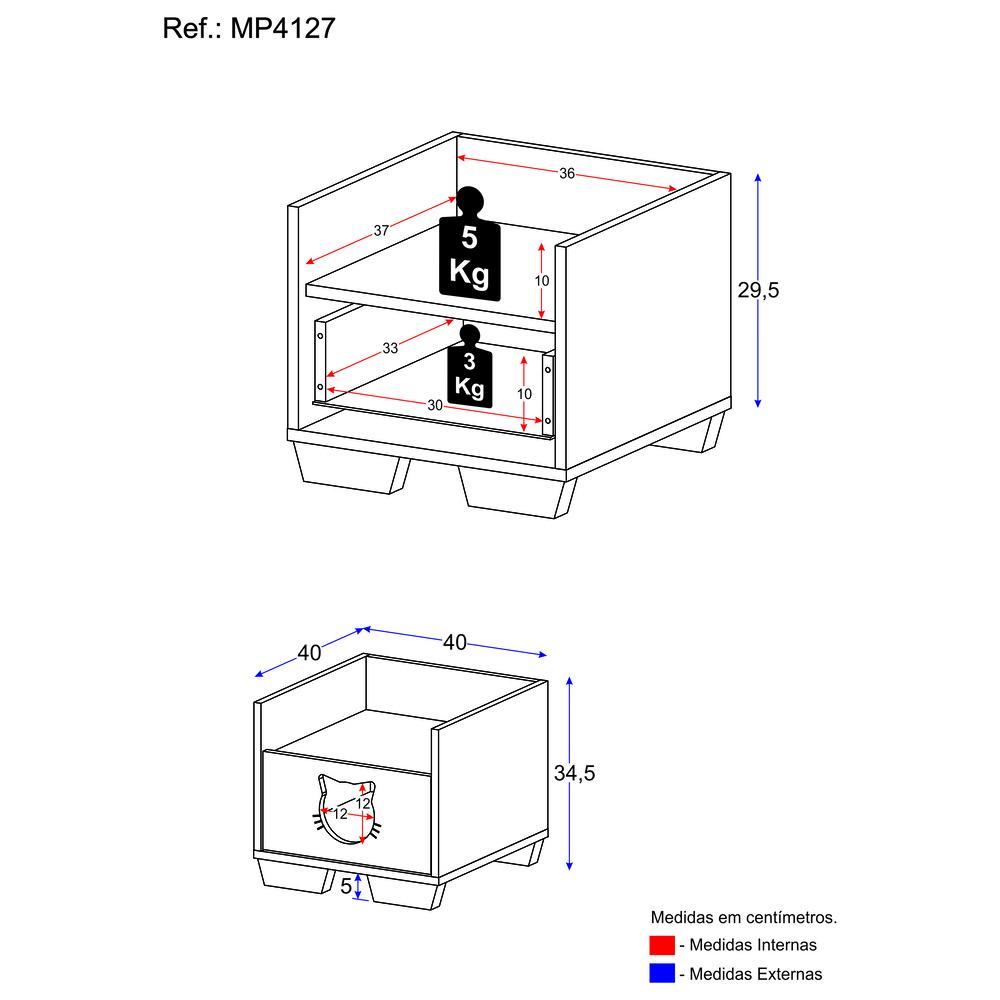 A Cama Pet para Gato com 1 Gaveta Multimóveis MP4127 é a escolha perfeita para proporcionar conforto e estilo ao seu gatinho de estimação! Fabricada em MDP e com acabamento acetinado (cerca de 20% de brilho), que garante resistência e durabilidade, além de facilidade na limpeza. O móvel suporta até 5kg e conta com um gaveteiro equipado com corrediças metálicas, que oferecem mais leveza no abrir e fechar. O detalhe da gaveta em formato de gatinho traz um charme único ao móvel e ainda permite que seu gatinho tenha momentos divertidos. A gaveta possui espaço para armazenar objetos e acessórios do pet, deixando o ambiente mais organizado. Os pés em polipropileno oferecem estabilidade e sofisticação à peça. O produto NÃO acompanha almofadas. Conteúdo da Embalagem: 1 (uma) Cama Pet Manual de Montagem Kit Ferragem Dimensões do produto montado: Altura: 34,5cm | Largura: 40cm | Profundidade: 40cm *Você pode consultar as medidas detalhadas na imagem técnica do produto. *As cores do produto podem sofrer variações de tonalidade de acordo com as configurações do seu dispositivo. Imagem meramente ilustrativa. Decoração não acompanha o produto. O produto será entregue desmontado e não disponibilizamos o serviço de montagem.